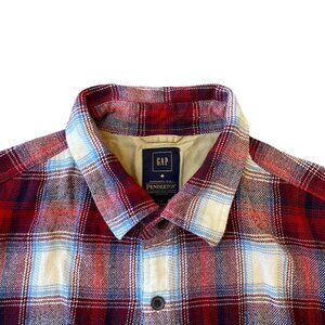 Gap + Pendleton Flannel Shirt Womens Large Blue Reg Plaid Boyfriend Fit