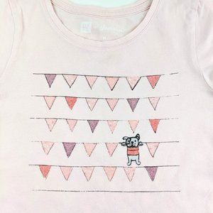 Gap Baby Pink Girls T-Shirt with dog and bunting banners graphic print in great condition