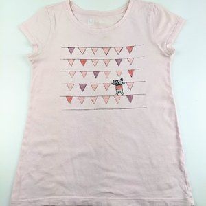 Gap Pink T-Shirt with Dog and Bunting Banner Girls Medium