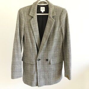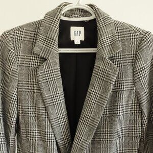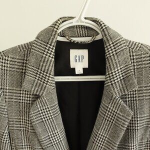 Chic GAP blazer, features a timeless black and white houndstooth pattern, Tailored for a flattering fit, with a double-breasted front closure and two functional pockets.