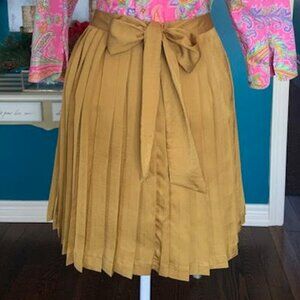 Tags: Pleated skirt, feminine style, medium fit, soft fabric, bow detail, above knee skirt, elegant casual look, flowy skirt, vintage vibe, cute everyday outfit, girly style, flattering fit, classic wardrobe piece, comfy chic skirt, ribbon accent.