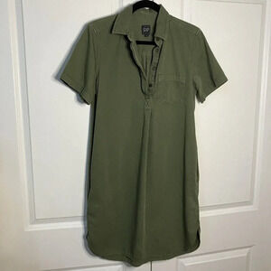 Gap Popover Short Sleeve Shirt Dress Womens Small Black Green Neutral