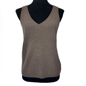 Keywords: Gap knit tank, ribbed V-neck top, brown stretch sleeveless