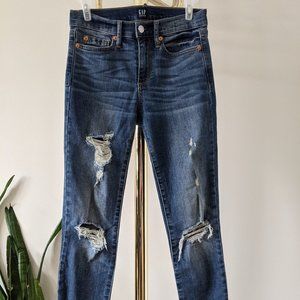 Gap Ripped Skinny Jeans, Mid-rise, Raw Hem, 25R