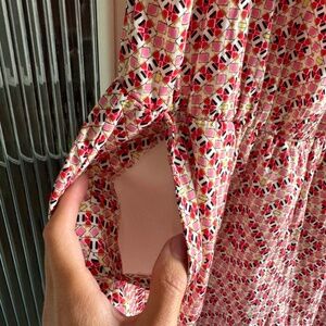 Gap romper with red, pink, and yellow geometric pattern. Bottom shorts part is lined. Has pockets. Zipper closure.