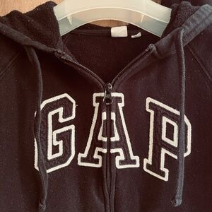 Elevate your casual style with the cozy comfort of this Gap tracksuit set, perfectly tailored for the petite frame. The set includes a snug hoodie sweatshirt and a matching pair of jogger pants, both in a classic black with a refined embroidered accent that adds a touch of elegance to your activewear ensemble. The long sleeves and elastic waist provide a flattering fit for a variety of activities, from walking to gym training.