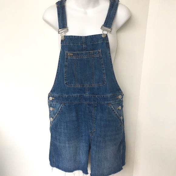 Gap Short Overalls Shortalls Sz XS Blue Denim Cotton Medium Wash Raw Hem