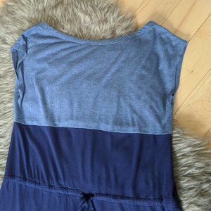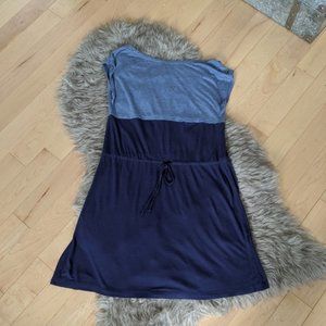 Two oned straight silhouette dress with an easy fit made with 100% smooth rayon. Short sleeve, crew neck and drawstring for chinced waist.