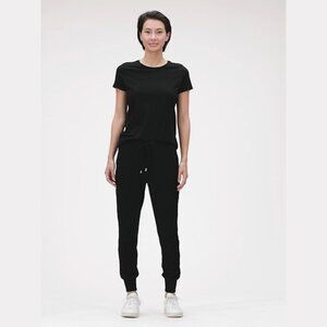 The perfect blend of airy and plush. Versatile and made for layering.Supersoft marled jersey knit., Drawstring ties at ribbed-knit elasticized waistband. Front slant pockets. Banded ribbed-knit cuffs.
