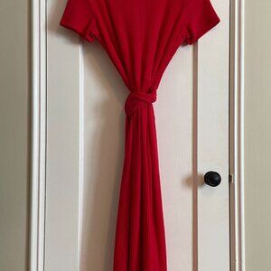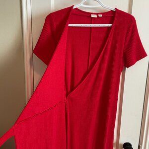 Gap Softspun Ribbed Midi Wrap Dress | Red | M