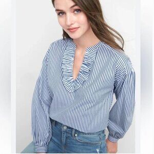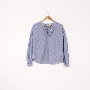 *Gap Striped Cotton Long Sleeve Stripe Ruffle V-neck Blouse