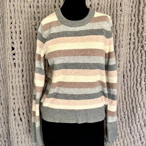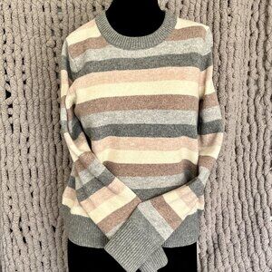 This GAP striped knit sweater is a must-have for Fall & winter, blending chunky textures, mood-boosting neutrals, and soft tailoring into one versatile piece. With horizontal stripes in cream, beige, gray, and taupe, it’s perfect for layering over collared shirts or pairing with denim and boots for a relaxed yet refined seasonal look.