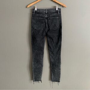 Picturing a pair of womens black acid washed skinny ankle highwaisted denim jeans by Gap in a size 25" waist.