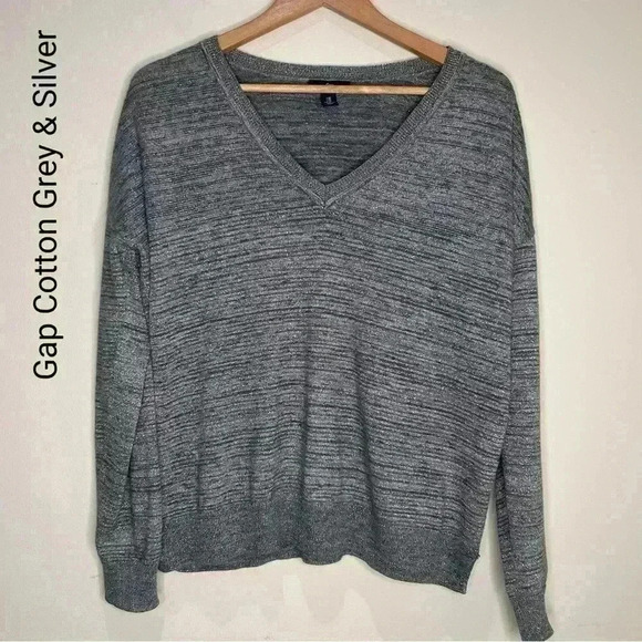 Gap V Neck Cotton Sweater Grey & Metallic Silver