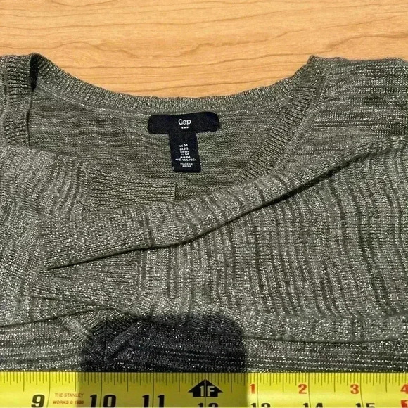 Gap sweater in VGUG. Grey with silver metallic threads. Subtlety add a bit of metallic sparkly to your fall winter wardrobe. Can be worn casually as athleisure or more formally.