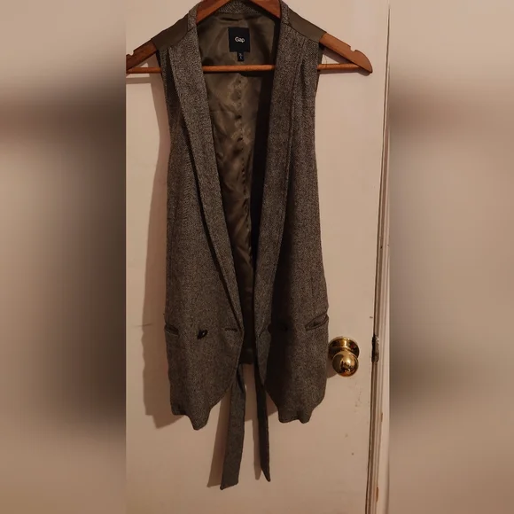 Sleek Gap Vest with buttons, pockets and waist cinching tie that can be tied front or back