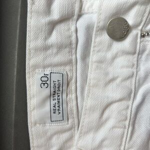 Stylish white denim crop jeans. Perfect for any occasion. Raw edge at hem, can be worn as ankle or cropped, straight cut 30 regular