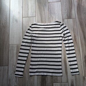 Gap Women’s Favorite Long Sleeve Shirt XS Black White Striped Crewneck Tee