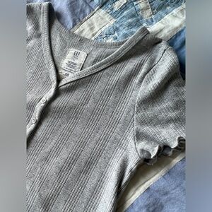 Gap Womens Grey Cropped Button Up Short Sleeve Ruffle Trim Knit Crop Top
