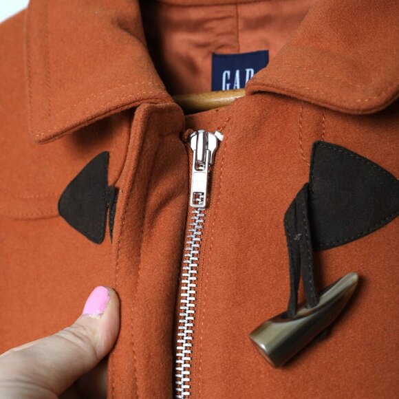 Gap Wool Blend Duffle Coat Winter Fall Peacoat Jacket Orange Brown Zipper Toggle Classic