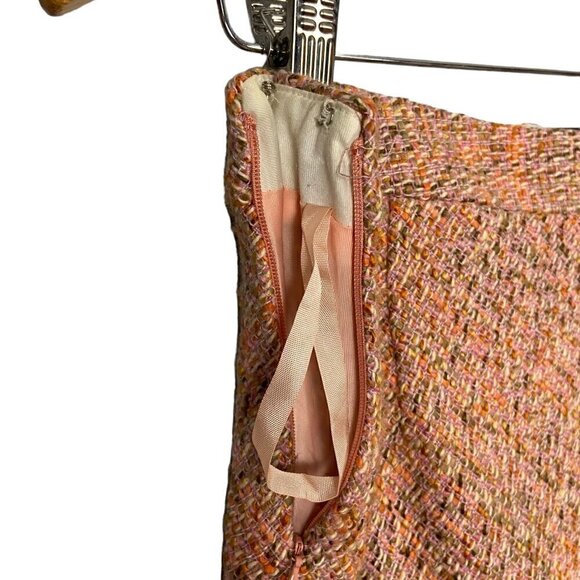 Gap Y2K Preppy Pink/Orange Tweed Mid Length Skirt with Ruffle Hem Size 6