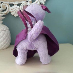 This adorable purple plush doggie features purple sparkle ears, collar, eye heart and purse straps, sports a silky purple skirt and a big jeweled heart and bow at her throat. There is a zippered opening on the back for access to very limited purse space - just room for a few small things - this dog travels light! In perfect, unused condition.