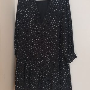 Gap black white polka dot peplum drop waist dress long sleeve