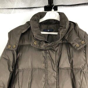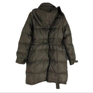Gap brown belted puffer trench hooded jacket Med