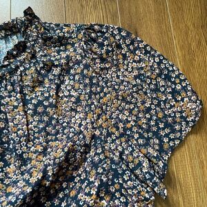 Gap floral blouse with ruffle neckline Navy with white,yellow, purple flowers