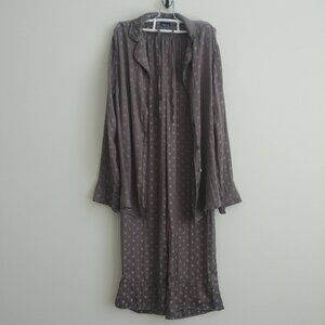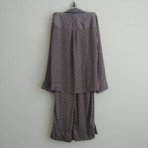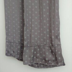 Gap full pajama set pants and button down shirt dark taupe polka dot silky XS