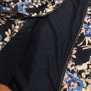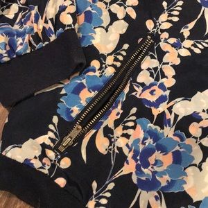 Floral navy ribbed collar and cuffs