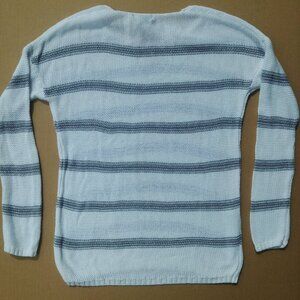 Gap lightweight loose knit 100% cotton sweater top white grey stripes Sm…