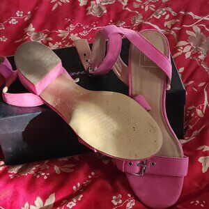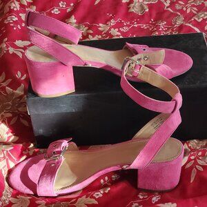 Gap - pink suede, flattering ankle wrap, chrome accents,