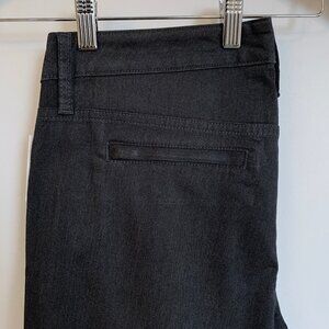 These pants are made of a really nice sateen fabric, which looks really rich and feels very soft. Zipback pocket with flap trim