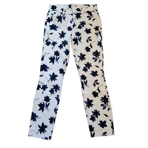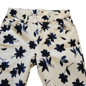 Gap signature, skinny, ankle, white and blue floral, capri pants. Zip-up fly with two clasps and button closure, two front pockets and two back fake pockets size 4