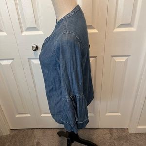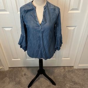 Denim chambray top with ruffled sleeves pullover styling Pit to Pit 38”