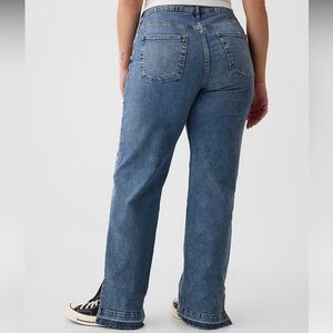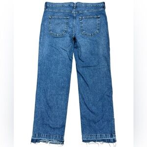 Gap sz 16 / 33 Jeans 90's Loose Mid Rise Raw Hem Distressed Hem Slit Blue Denim