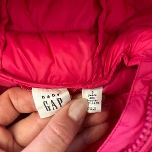 Gap toddler light jacket, hot pink so cute! Has a stain on the front, not crazy noticeable. Priced accordingly