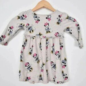 Gap x Disney Minnie Mouse Cream/Grey Cotton Long Sleeve Dress 3T