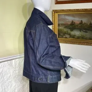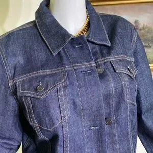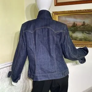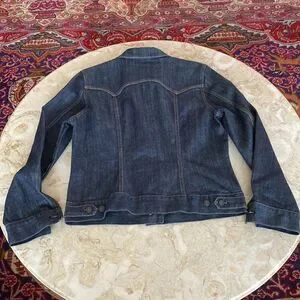 In practically new condition beautiful Gap denim jacket. Classic dark wash, beautiful back detail, slightly fitted with adjustable buttons. Fabric has a bit of stretch so you’re guaranteed a flattering fit.