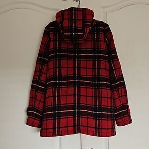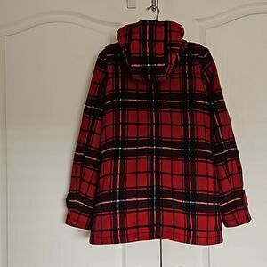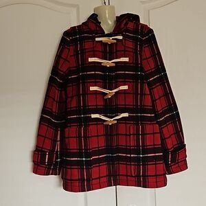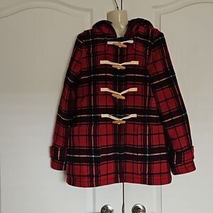 Gap Wool Blend Buffalo Plaid Hoodie Coat With Toggle Buttons Small Red & Black