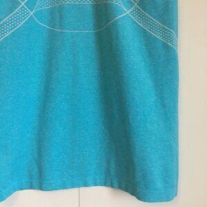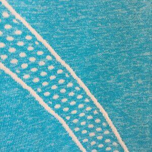 Excellent preowned condition, aqua blue, retro-looking, stretchy, form-fitting racer back tank top by Gapfit. Strong retro vibes from the white curved line and dot pattern, colour and material that's almost like a knit. A nice quality piece from Gap's athletic line that does not disappoint.