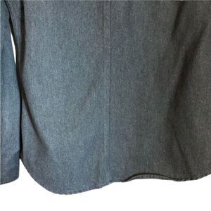 Super nice and heavy material. Has the clip on buttons rather than traditional buttons. Pretty sure this is a men’s shirt with the way the buttons are. Refer to measurements below.