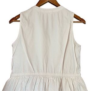 This Gap White Sleeveless Dress is in excellent condition with minimal signs of wear. It features a flattering drawstring waist, functional pockets, and is fully lined for added comfort. A super cute and versatile dress perfect for casual or semi-dressed-up occasions.