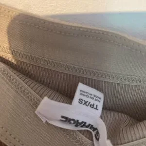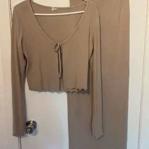 Chic beige ribbed top with matching skirt. Great for dressing up or down. Very stretch material fits XS-M.