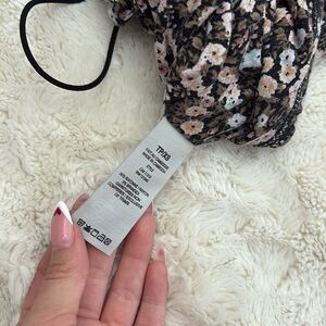 Add a playful twist to your closet with this Garage black floral crop top in size XS. Designed with ultra-thin shoulder straps and a soft, stretchy fit, this cami-style top features a vibrant ditsy flower print in pink, blue, and white — channeling sweet Y2K vibes with a casual-chic flair.