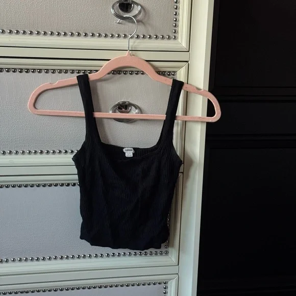 black ribbed tank from Garage. Ideal for layering or solo wear.