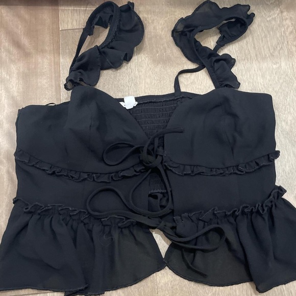 Garage Black Ruffled Blouse