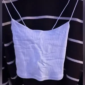 Stylish white ribbed camisole with spaghetti straps. Ideal for layering or a simple look.