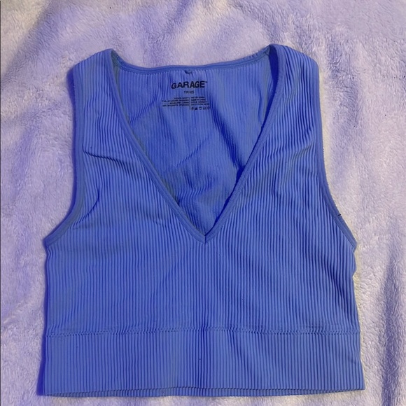 Garage Blue Ribbed Crop Tank Top